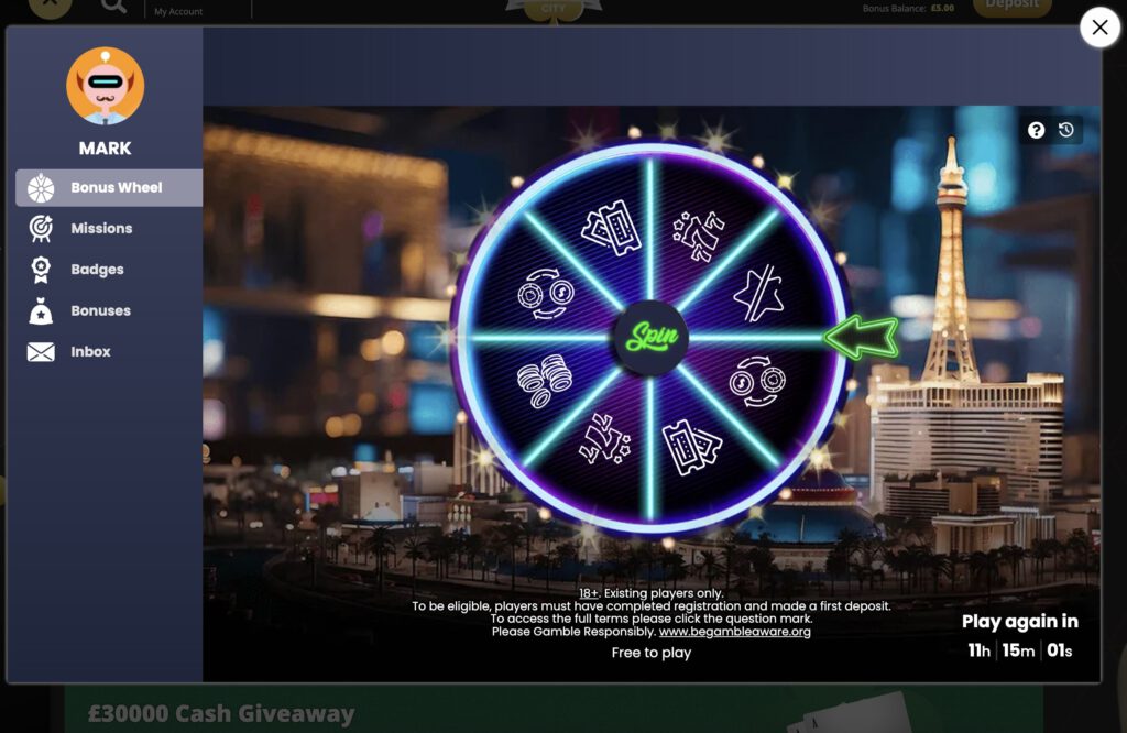 Anyone who has a verified account and has made a deposit is eligible to spin the daily bonus wheel, a prize wheel which awards bonuses and free spins. Some of these require a deposit to trigger the bonus, but not all.