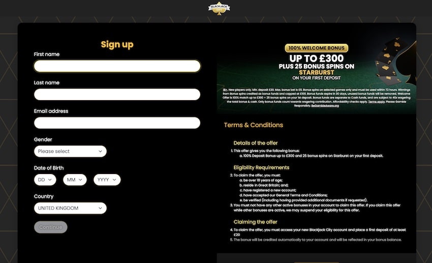 To claim this offer you must be a new customer to Blackjack City with no previous account. You should register through this link and make a deposit of £20 or more.