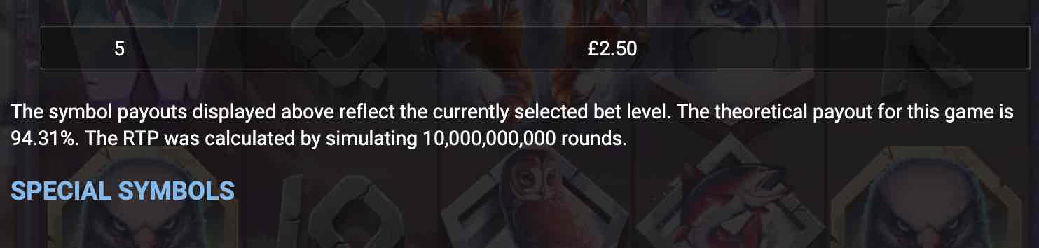 There is a standardised testing process for all games that appear on websites licensed by the UK Gambling Commission. This work is carried out by approved 3rd party testing houses like eCorga and iTechLabs. Game testing ensures that the outcome of every spin is completely random and that slots perform at the advertised Return to Player level. So, when you see an RTP figure advertised in a game like the one below you know the percentage is based on billions of test spins and is an accurate reflection of how the game will perform.